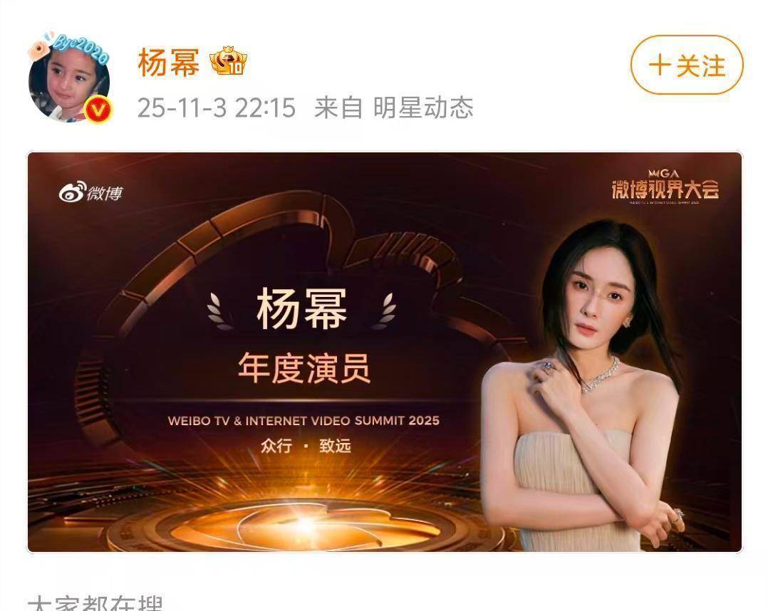 11月3日,她晒出自己荣获年度演员的消息,这一回,她获得这份荣誉可谓当之无愧。